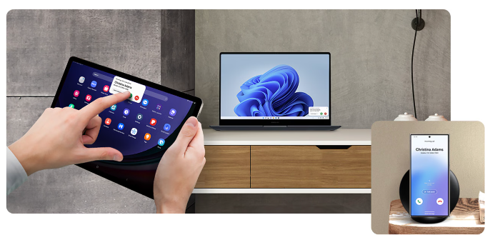 - 갤럭시북에서 메시지, 사진, 통화 기록 등을 확인하고 사용할 수 있습니다.