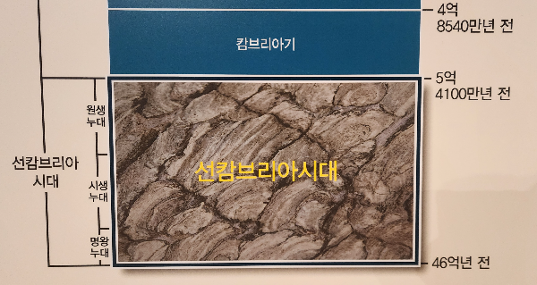 46억년 지구 역사의 88%를 차지하는 선캄브리아시대 동안 지구 내부는 핵, 맨틀, 지각으로 분화되어 판구조 운동이 시작되었으며, 약 40억년 전쯤 생명이 지구의 바다에 처음으로 나타났다. 원생누대에 낭림 육괴, 경기육괴, 영남 육괴 등 한반도를 이루는 3개의 땅덩어리가 생겨났고, 한반도에 생명이 존재했다는 사실은 스트로마톨라이트로 알 수 있다.