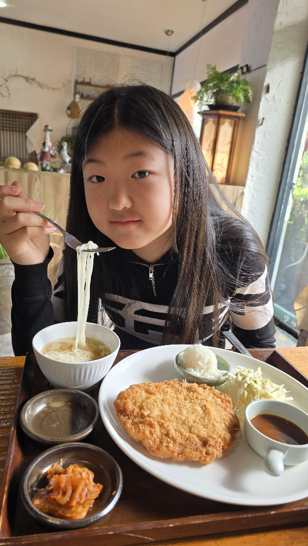 우리 아이들이 특히 좋아했던 건 돈까스를 썰었을 때 치즈가 늘어나는 모습이었어요. 마치 마술을 보는 것처럼 신기해하면서 즐겁게 식사했답니다. 평소 까다로운 입맛을 가진 막내도 남김없이 다 먹을 정도로 맛있게 먹었네요.