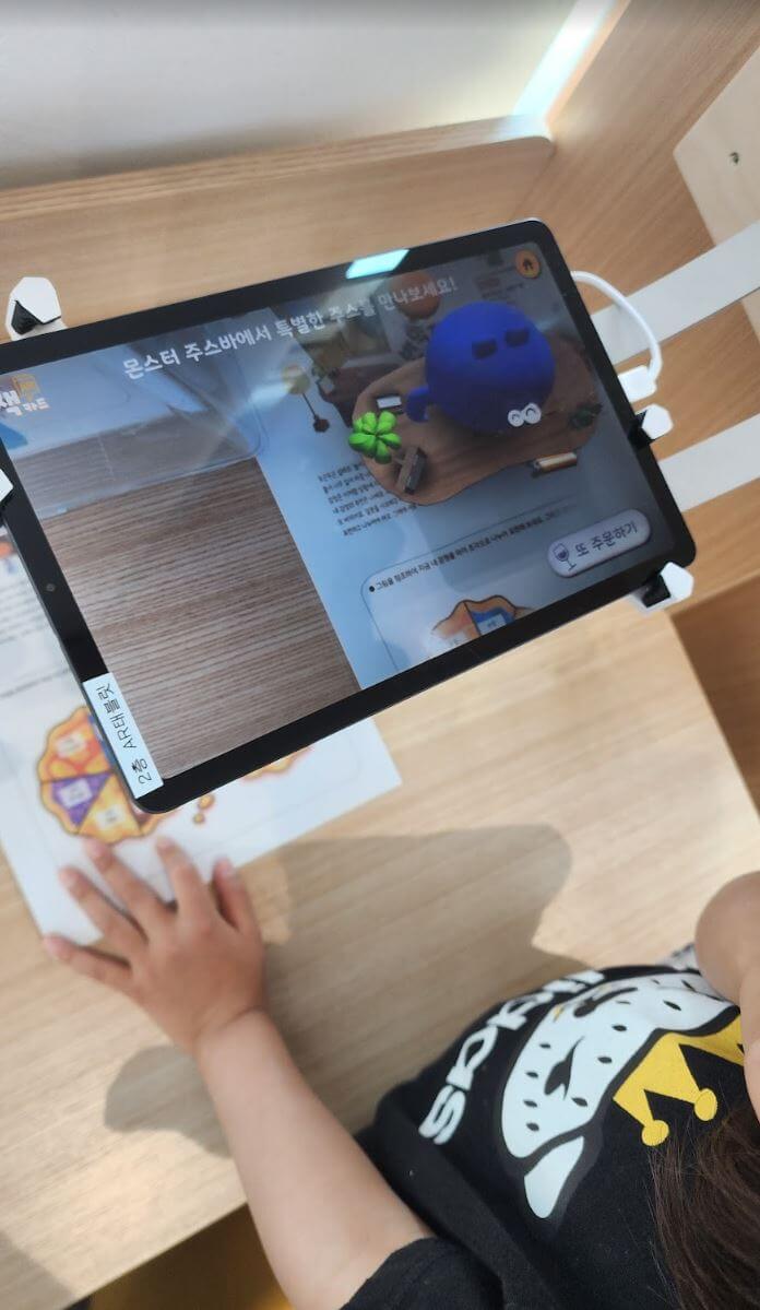 주차장에 주차를 하고 건물입구를 들어가면 바로 2층입니다. 왼쪽에 2층 아이들이 책을 편하게 볼 수 있는 공간이 있습니다. PAD를 활용한 증강현실 활용한 공간도 있습니다.