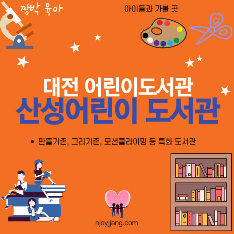 대전에서 아이들과 가볼 도서관을 추천해 드립니다. 바로 대전학생교육문화원 부설 산성어린이도서관입니다. 본 도서관은 "책+체험으로 상상력을 키우는 어린이도서관"이라는 주제를 가진 도서관입니다.