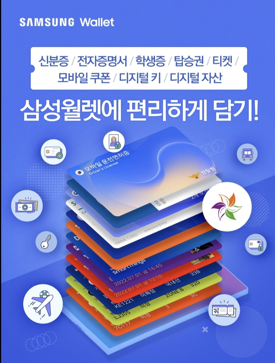 신분증, 전자증명서, 학생증, 탑승권, 티켓, 모바일 쿠폰, 디지털 키, 디지털 자산까지 한곳에서 관리할 수 있습니다.