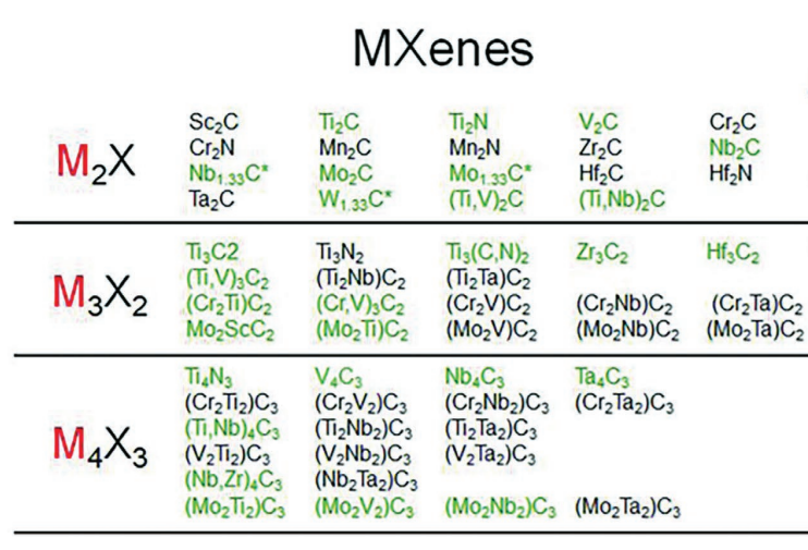 MAX의 다양한 구조는 아래와 같이 아주 다양한 원소로 구성된 맥신을 만드는 다양한 연구들이 진행되어 왔습니다.