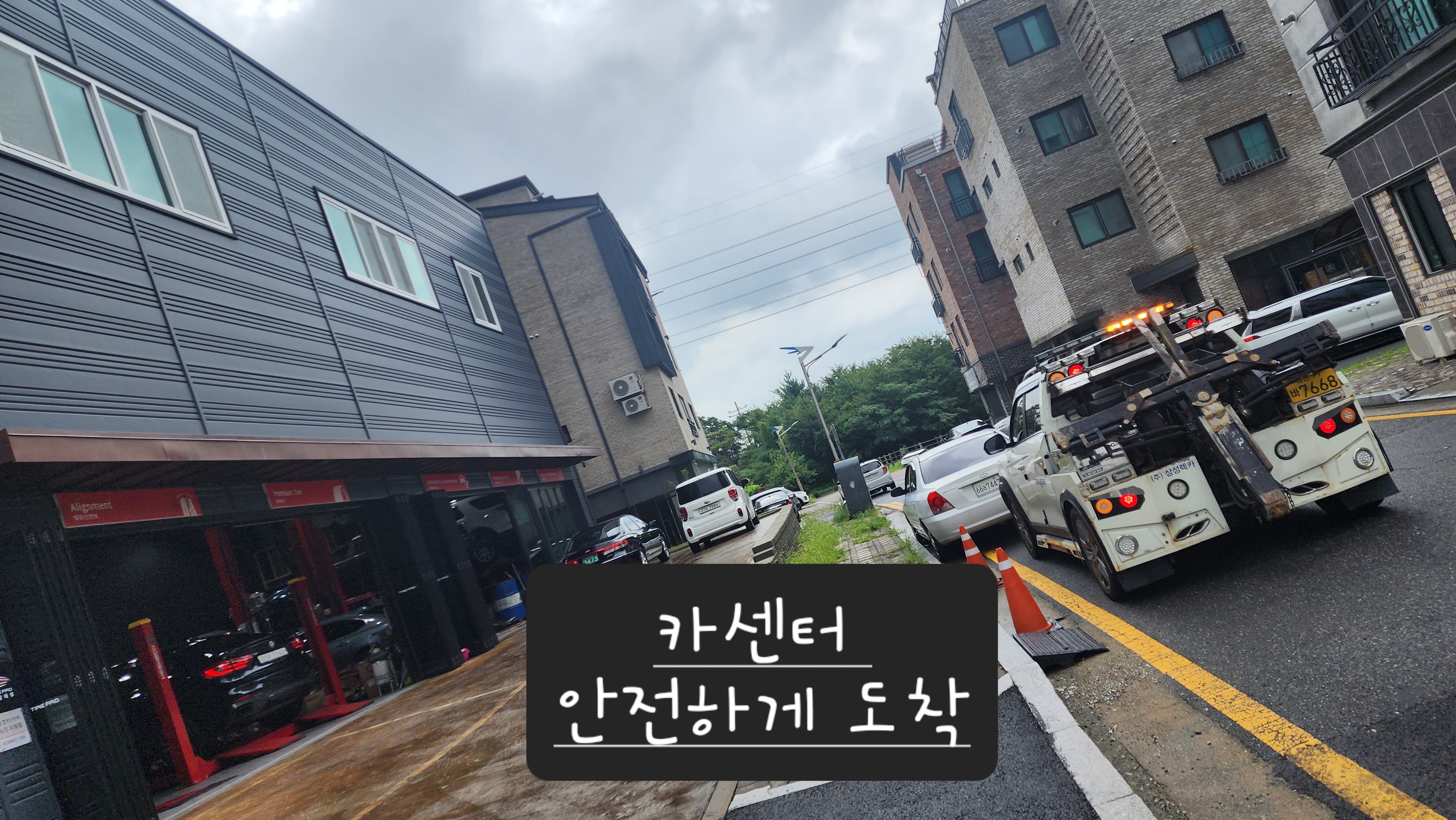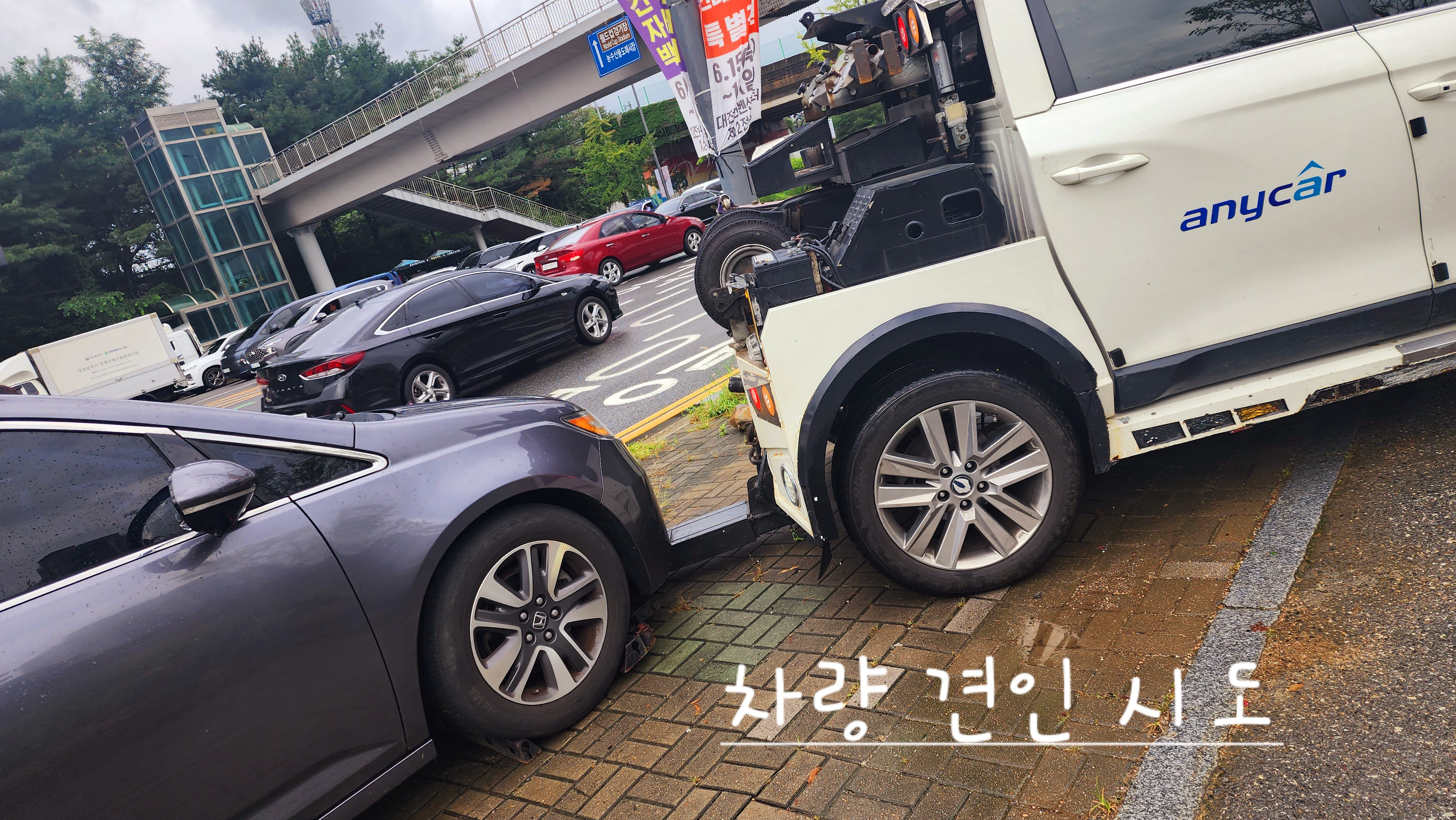 - 소형 견인차가 와서 다행히 앞바퀴를 들어서 견인이 가능해졌습니다.