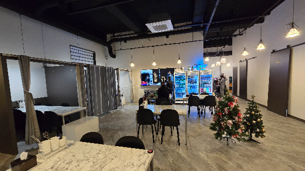 오른쪽에는 예약을 해서 들어가는 방으로 되어 있고, 왼쪽도 커튼으로 가려질 수 있고, 테이블 마다 분리가 되어 있어요