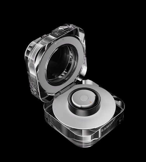 갤럭시 링의 언박싱 경험은 매우 독특했습니다. 상자에는 갤럭시 링이라고 적혀 있으며, 반지를 열듯이 한쪽으로 열리는 방식입니다. 상자를 열면 투명한 갤럭시 링 케이스가 보입니다. 케이스는 각진 코너와 LED 라이팅으로 세련된 디자인을 자랑합니다. LED 라이팅은 충전 상태를 표시해 주는데, 디자인과 기능을 모두 만족시킵니다. 케이스는 투명 화이트와 실버 조합으로 고급스러움을 더했습니다.