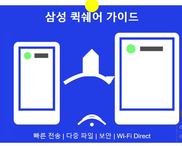 퀵쉐어는 삼성에서 개발한 근거리 무선 파일 공유 기능입니다. 애플의 에어드롭과 유사한 이 기능을 사용하면 Wi-Fi Direct 기술을 이용해 대용량 파일도 빠르게 전송할 수 있습니다.