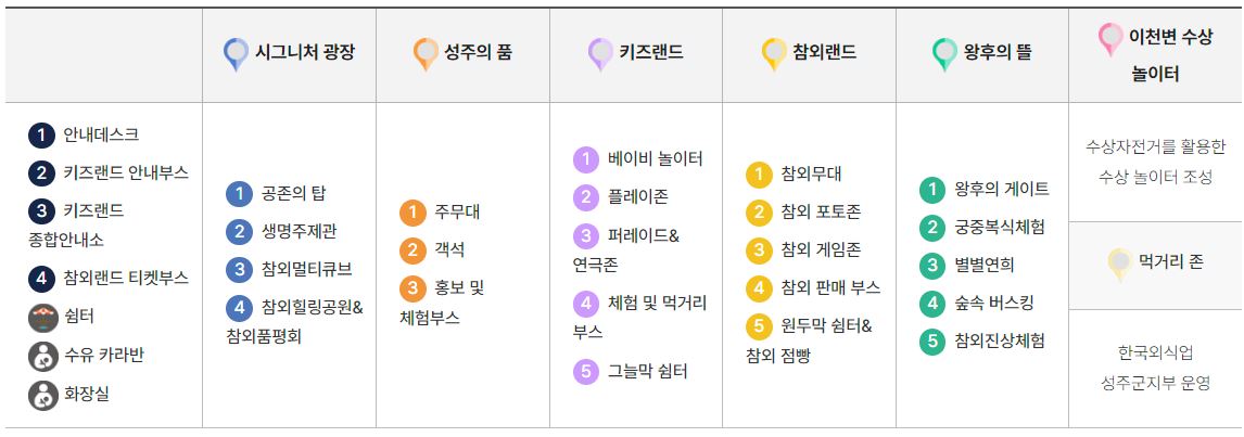 - 성주의 품 : 성주 군민과 만나는 참여형 공간 (홍보 /전시부스 등 군민이 참여하고 관람객과 소통하는 공간)