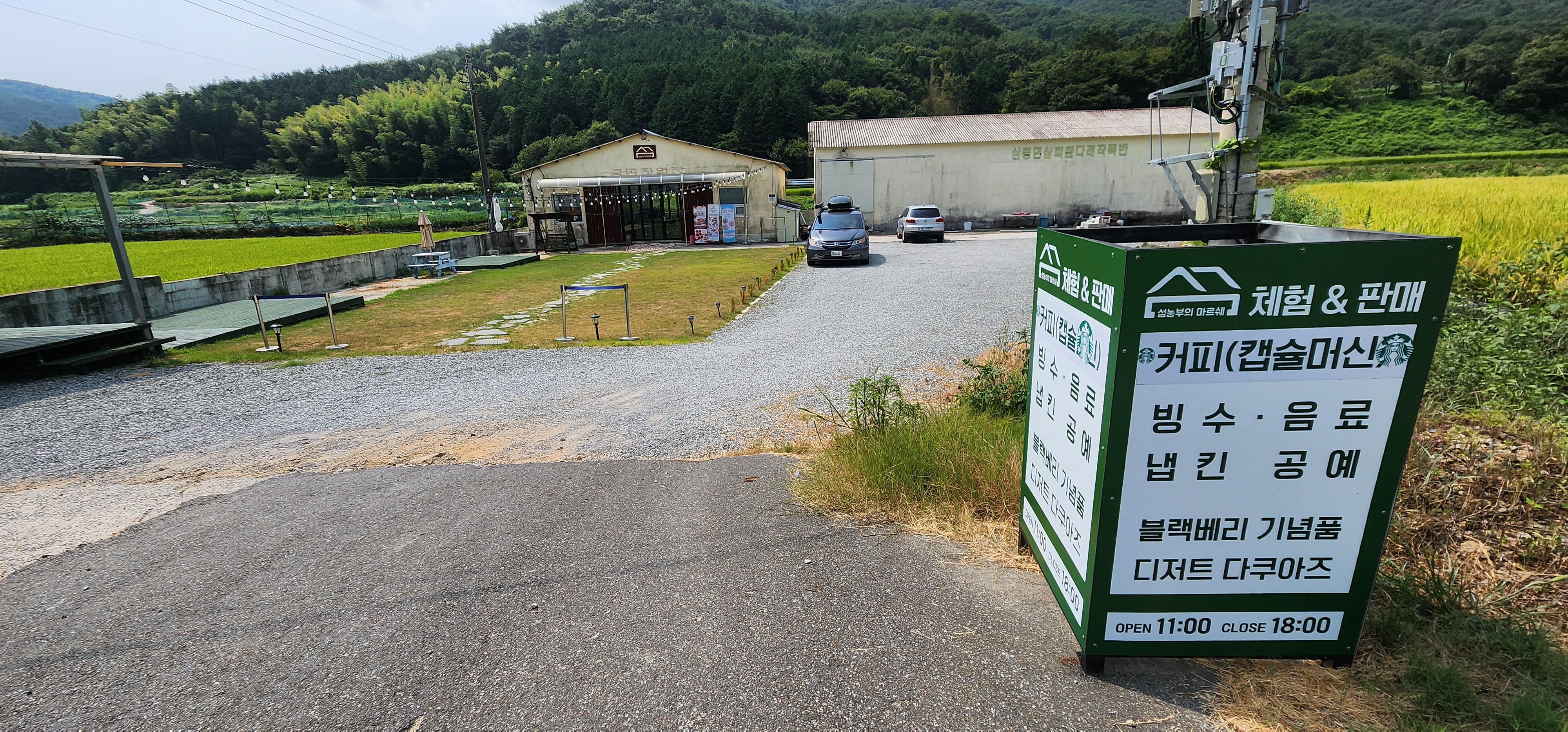더운 여름날, 우리 가족이 첫 번째로 찾은 곳은 '섬농부의 마르쉐'였어요. 이곳에서는 특별한 체험이 우리를 기다리고 있었죠. 바로 블랙베리 농장에서 진행하는 '빙수 만들기 체험'이었답니다.