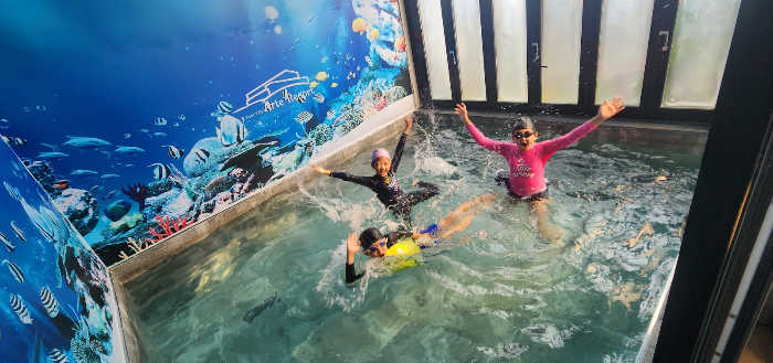 풀빌라로 들어와서도 아이들의 물놀이는 계속되었어요. 실내 수영장의 물이 따뜻하게 잘 데워져 있어서 아이들이 정말 좋아했답니다. 특히 수영장의 깊이가 적당해서 아이들이 마음껏 수영을 즐길 수 있었어요. 야외 수영장에서 놀다가 들어와서도 계속 수영을 하며 논다고 하니, 풀빌라를 선택하길 정말 잘했다는 생각이 들었답니다.