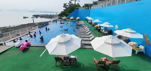 하지만 아이들은 야외 수영장에서 정말 신나게 놀았어요! 입장 관리가 제대로 되지 않아 조금 붐비긴 했지만, 아이들의 즐거워하는 모습을 보니 아까의 서운함이 싹 사라졌어요.