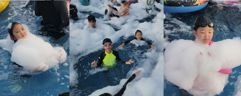 밤이 되어서도 따뜻한 물에서 수영을 할 수 있다는 게 아이들에겐 정말 특별한 경험이었나 봐요. 평소에는 쉽게 경험할 수 없는 이런 시간들이 아이들에게는 잊지 못할 추억이 되었을 것 같아요.