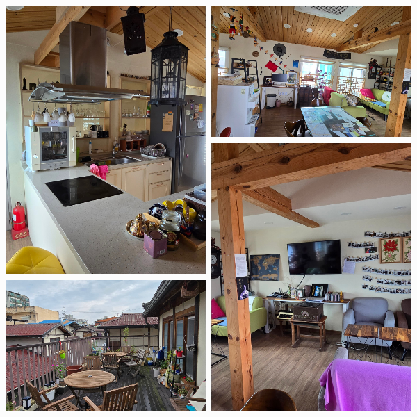 소백여관의 2층 휴게실에 준비되어 있는 빵과 커피 등, 주방용품으로 계란후라이 등 아이들의 아침 준비...