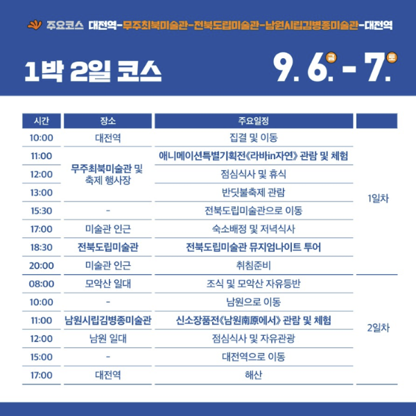 일단 프로그램은 아래와 같이 전라도의 미술관을 투어하는 프로그램입니다.