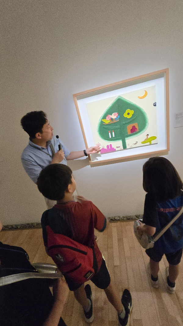 이어진 전시 관람에서는 더욱 특별한 경험을 했어요. 관장님께서 직접 전시 설명을 해주셨거든요! 초등학생도 이해할 수 있을 만큼 쉽고 재미있게 설명해주셔서, 미술을 잘 모르는 저도 작품 하나하나가 새롭게 다가왔습니다.