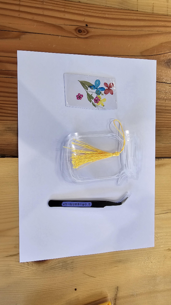 가장 기억에 남는 순서는 꽃 책갈피 만들기 체험이었습니다! 선생님들께서 친절하게 지도해주셔서 처음이었지만 즐겁게 참여할 수 있었어요. 작은 핀셋으로 예쁜 꽃들을 하나하나 정성스럽게 놓아가며 나만의 책갈피를 만들었답니다. 완성품을 보니 뿌듯함이 가득! 😊