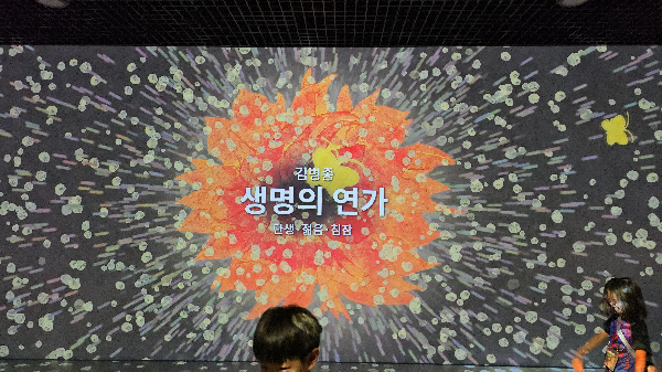 아침 식사 후 방문한 김병종미술관은 기대 이상이었어요. 첫 순서로 '생명의 연가' 미디어아트를 관람했는데요, 전통적인 회화와 현대 기술이 만나 신비로운 분위기를 자아냈습니다. 빛과 색채가 움직이며 만들어내는 예술 작품이 너무나 인상적이었어요.