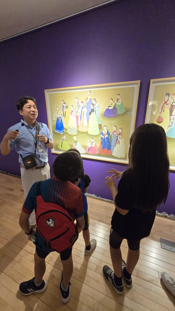 이어진 전시 관람에서는 더욱 특별한 경험을 했어요. 관장님께서 직접 전시 설명을 해주셨거든요! 초등학생도 이해할 수 있을 만큼 쉽고 재미있게 설명해주셔서, 미술을 잘 모르는 저도 작품 하나하나가 새롭게 다가왔습니다.