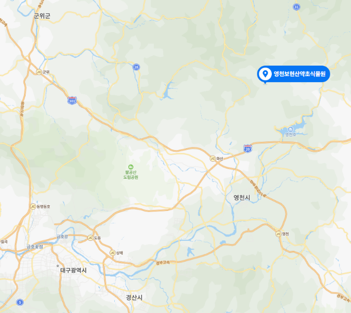 영천을 방문 안 해 보신 분들이 있기 때문에 주행사장인 "보현산약초식물원"이 어딘지 먼저 알려드리겠습니다. 대구에서 약 65 km 북동쪽 위에 위치하고 있습니다. (서울에서는 약 313km 떨어져있으며 4시간 27분 정도 걸립니다.)