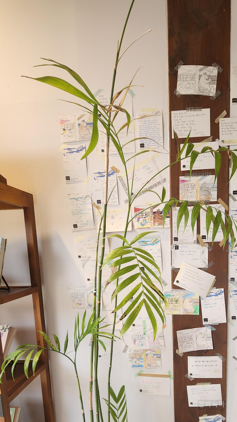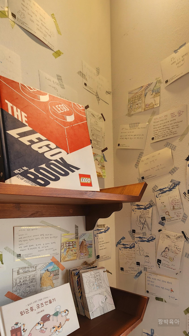 책을 다 읽으셨으면 건너편에 엽서 색칠하기 또는 소원 적기 등을 도서관의 벽에 붙여 놓을 수 있는 공간이 마련되어 있습니다. 아이들은 여기서 색칠도 하고, 글도 쓰고 다른 사람들이 붙여 놓은 작품들도 감상하실 수 있습니다. 이러한 작은 공간이 아이들에게는 잠시 독서가 아닌 집중을 할 수 있는 시간을 마련하게 해 줍니다.
