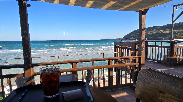 저는 아메리카노 한 잔을 주문해 여유롭게 바다를 바라보며 시간을 보냈습니다. 그러나 아쉽게도 인기가 너무 좋아 사람들이 많았고, 그로 인해 조금 시끄러운 것이 단점으로 느껴졌네요.