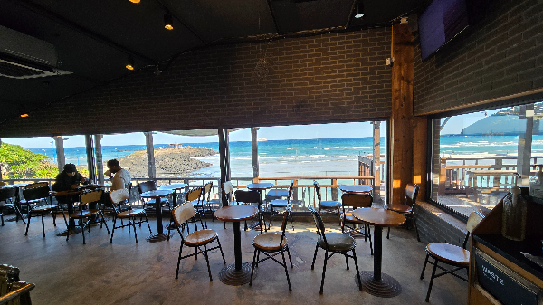 저는 아메리카노 한 잔을 주문해 여유롭게 바다를 바라보며 시간을 보냈습니다. 그러나 아쉽게도 인기가 너무 좋아 사람들이 많았고, 그로 인해 조금 시끄러운 것이 단점으로 느껴졌네요.