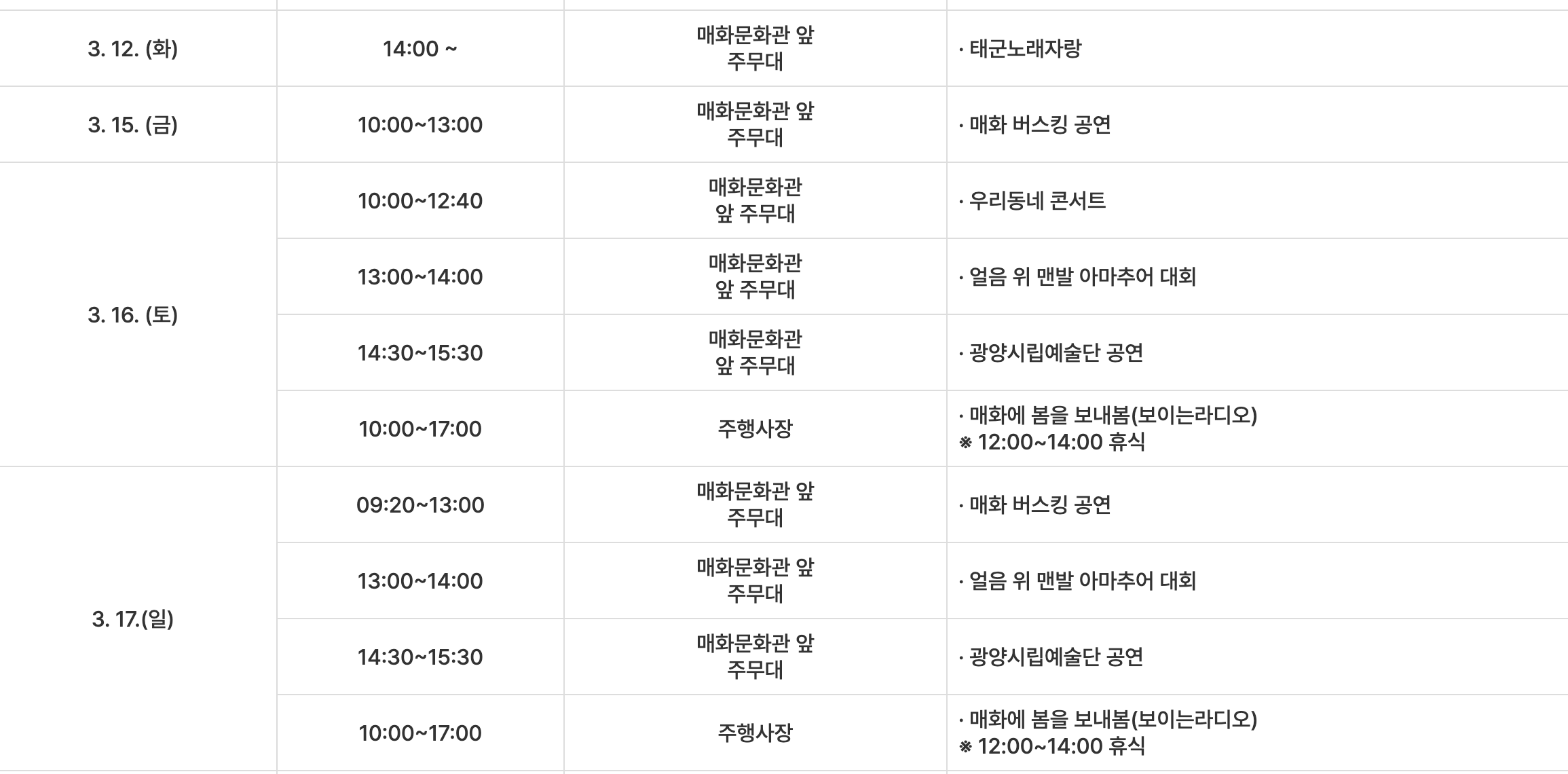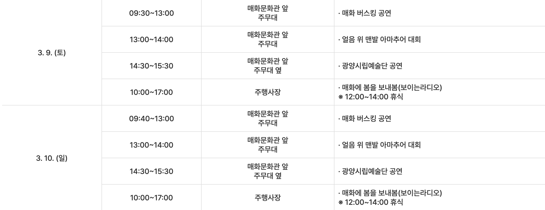 - 주최/주관: 광양매화축제위원회
