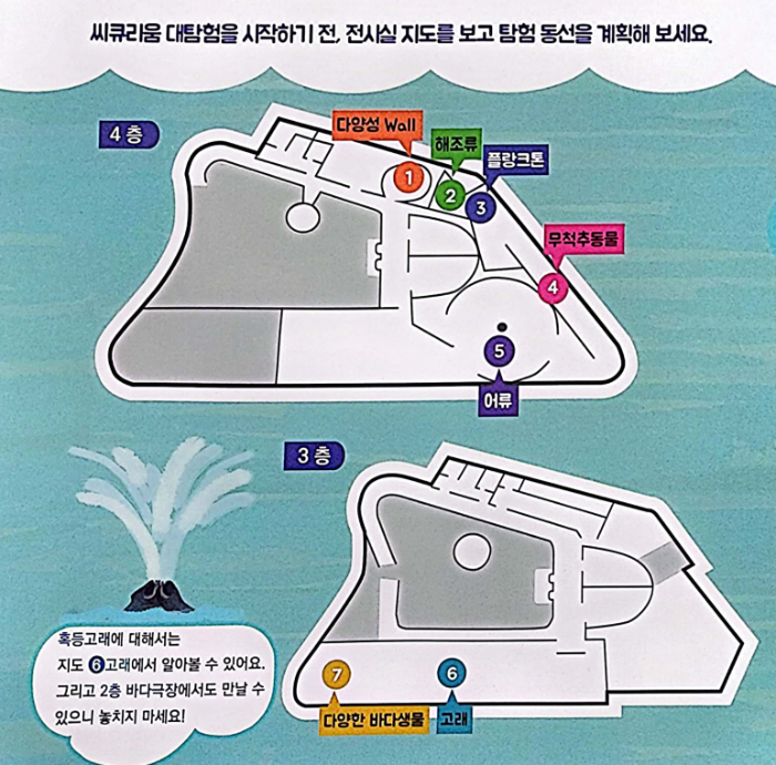 우선 많은 사람들이 몰리기 전에 아이들과 3층 4층 에서 씨큐리움 전시실을 둘러 보시길 권합니다.