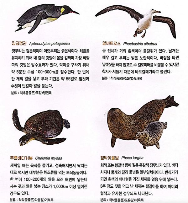 바다생물 중에는 바다와육지를 오가며 살아가는 생물도 있어요. 살아가는환경에 맞는 적절한 몸의 구조를 가지고 있어요.
