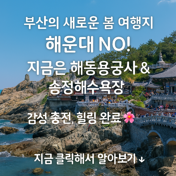 하지만 **이제는 ‘해동용궁사’와 ‘송정해수욕장’**이 새로운 부산 대표 여행지로 자리 잡고 있습니다!