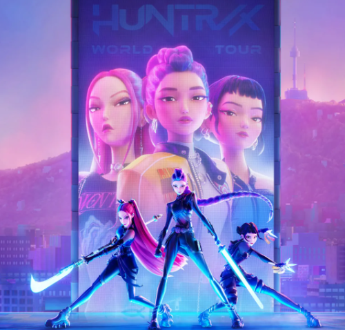 케이팝 걸그룹 **‘헌트릭스’**는 이중적 삶을 살며, 악마왕 ‘귀마’에 맞서 싸운다.