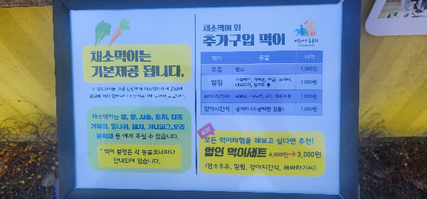 동물원에는 기본 먹이 뿐만 아니라 추기 먹이를 구매할 수 있습니다. 당연히 우리는 추가로 구매해서 장바구니를 들고 다녔습니다.