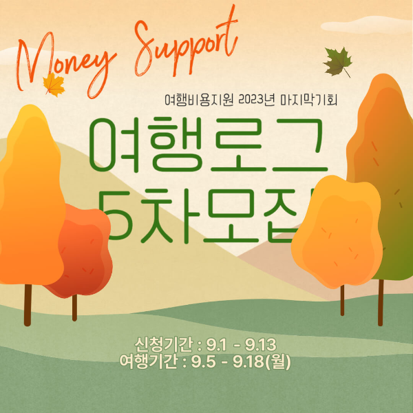 여행로그에서는 가을 여행시, 여러분들이 각각 진행한 여행 데이터를 확인 후에 당일치기 여행에는 68,000원, 1박 2일 여행에는 128,000원 현금으로 입금시켜 줍니다. 단 이번 5차 모집에서 1박 2일은 제주도/도서권 여행만 지원이 가능합니다.
