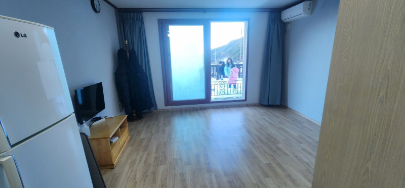 오션뷰에서 바라보면 약간은 좁은 느낌은 있으나, 따뜻한 방에서 바다와 산이 함께 어우러진 모습을 볼 수 있습니다. 방 앞쪽에는 베란다가 있어서 나갈 수 있습니다. 아이들은 신나게 나가서 눈놀이를 안전하게 할 수 있습니다. 야생 동물도 많이 있는 것으로 눈이 온 바닥에서 확인할 수 있었습니다. 아래와 같이 검은 고양이가 우리를 반겨줘서, 우리도 추운 겨울 고양이에게 먹을 것을 나줘 주었습니다.