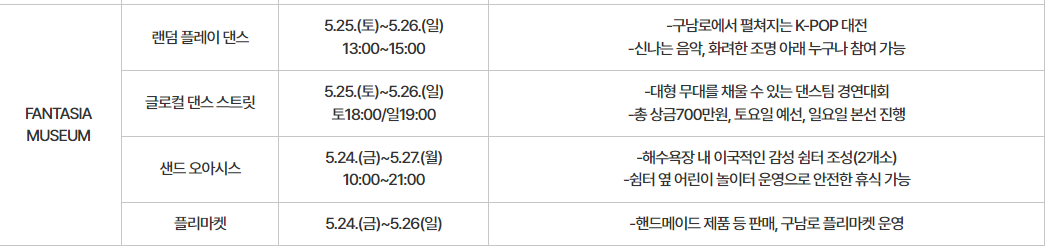- 입장료 : 무료 (체험 프로그램 일부 유료)