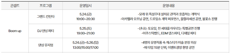 - 장소 : 부산광역시 해운대구 해운대해변로 280 (중동) 해운대해수욕장 및