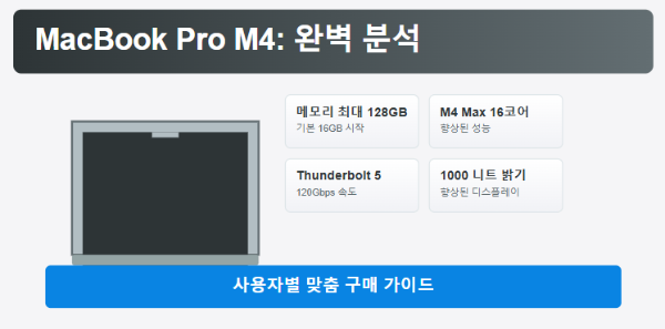 핵심 키워드: #맥북프로M4성능 #메모리대역폭향상 #썬더볼트5지원 #프로세서성능개선 #전문가용노트북